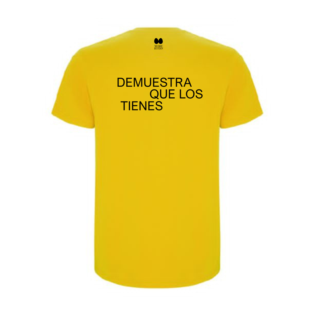 Camiseta NO HAY HUEVOS en amarillo: un disparador mental «DEMUESTRA QUE LOS TIENES» que activa visibilidad, decisión y acción. Diseño minimalista con actitud que no pasa desapercibida.